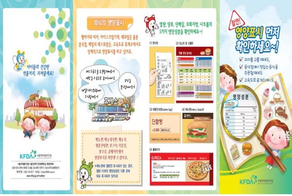 리플릿 주요 내용은 ▲영양표시 목적 ▲ 과자, 캔디 등 가공식품의 영양표시 확인 방법 ▲패밀리레스토랑 및 분식점 등 식당의 외식 영양표시 확인 방법 ▲신호등 영양표시 안내 등이다.리플릿은 전국 시도 교육청과 급식관리지원센터에 배포해 교육자료로 활용될 예정이다.