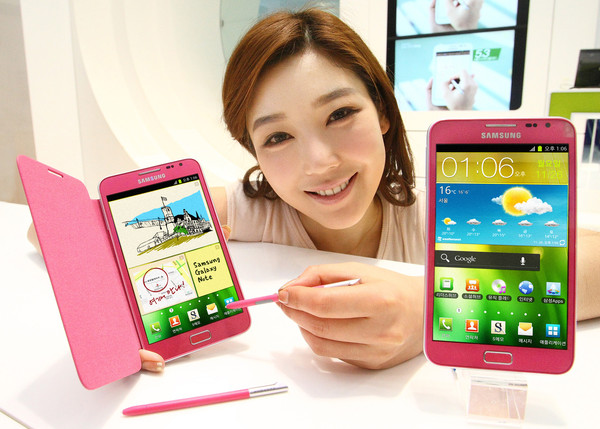 갤럭시노트 핑크는 여성과 젊은 세대들을 겨냥한 편안하면서도 사랑스러운 느낌의 베리 핑크 컬러를 스마트폰 전면과 후면은 물론 S펜에도 모두 적용했다.