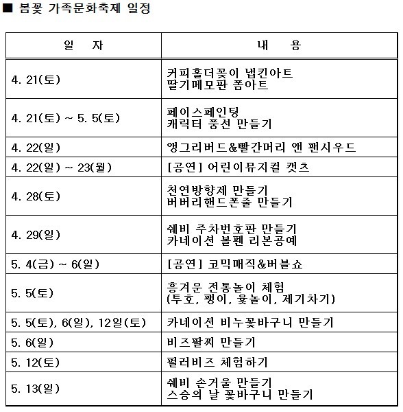 아울러 5월에는 가정의 달을 맞아 한마음회관에서 페이스페인팅, 캐릭터 풍선 만들기 등 다양한 이벤트도 마련된다.