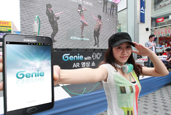 첫 번째 쇼는 회원 200명을 초청해 지난 29일 대전 은행동 으능정이거리에서 ‘지니 with EXO-K AR(Augmented Reality, 증강현실) 영상쇼’를 열었다.
