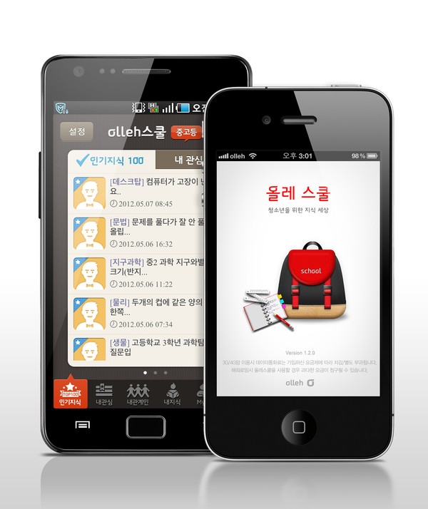 KT, 학습 SNS 앱 ‘올레스쿨 중고등’서비스 오픈 묻고 답하며 정보교류… ‘멘토링’ 시스템도 갖춰 다양한 학습·입시정보 등… 스마트폰서 무료 이용