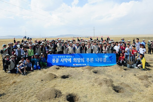 지구를 푸르게 가꾸는 사회공헌 활동 ‘글로벌 플랜팅 프로젝트’ 일환으로 몽골 사막에서 펼치고 있는 ‘대한항공 숲’ 조성 사업이 올해로 9년째를 맞았다.