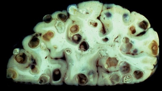 덜 익은 돼지고기나 오염된 물 등을 통해 '뇌유낭미충증(neurocysticercosis)'이 발병한 뇌 사진이 공개돼 충격을 주고 있다.