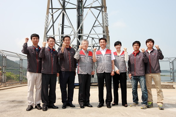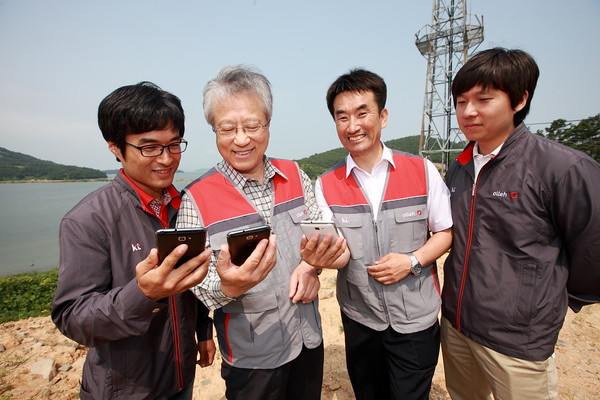 KT 이석채 회장이 22일 여수지역 LTE 품질 최적화 현장을 방문해 직원들을 격려했다.