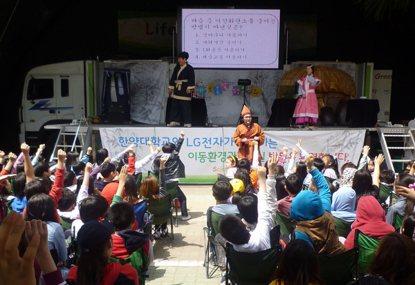 LG전자는 한양대학교 청소년과학기술진흥센터와 함께 초등학교 4~6학년생을 대상으로 이동환경과학교실을 운영하고 있다.