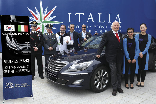 현대자동차는 16일 2012 여수세계박람회(엑스포) 이탈리아관에 ‘제네시스 프라다’ 1대를 의전용 차량으로 제공한다고 밝혔다.