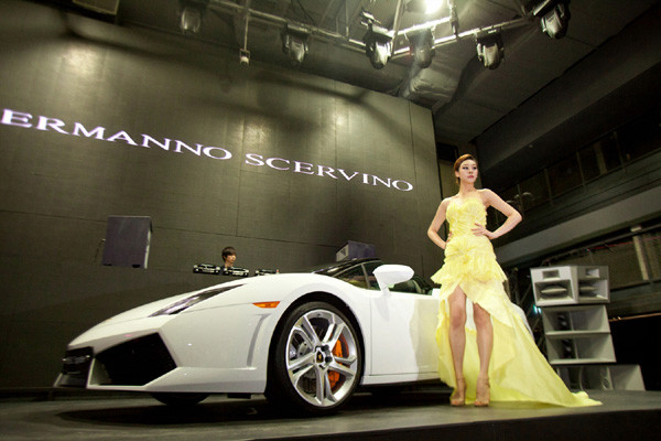 ‘클럽 옥타곤’의 무대 위에서 씩씩거리던 ‘거친 황소’ 옆에 늘씬한 귀부인들이 나타났다. 이들은 가야르도 LP550-2 런칭에 맞춰 공동 패션쇼를 연 이탈리아 고급 브랜드 ‘에르마노 셀비노’의 모델들이었다.