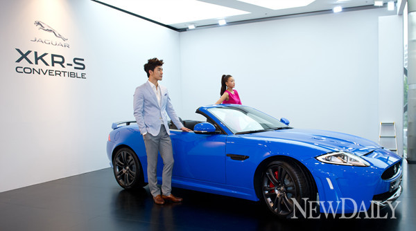XKR-S 옆에서 포즈를 취한 데이비드 맥킨타이어 재규어 랜드로버 코리아 대표. 맥킨타이어 대표는 최근 국내 시장점유율 상승에 감사하며 XKR-S가 한국에서도 상당한 관심과 인기를 끌 것이라고 자신했다.