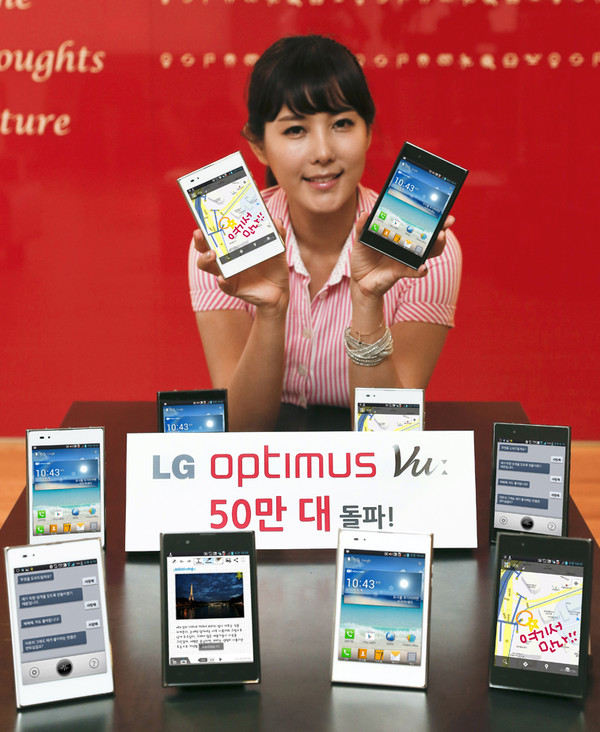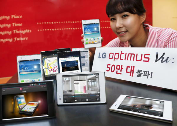 LG전자는 13일 올 3월 출시한 전략 LTE 스마트폰 ‘옵티머스 뷰(Vu:)’가 국내시장 누적판매 50만대를 돌파했다고 밝혔다.