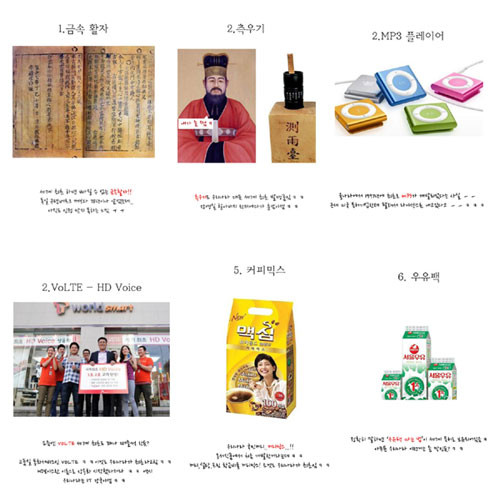 공개된 게시물에는 금속활자를 비롯한 측우기, 커피믹스, mp3 등 우리나라가 세계 최초로 개발한 제품인지 몰랐던 물품들이 많다.