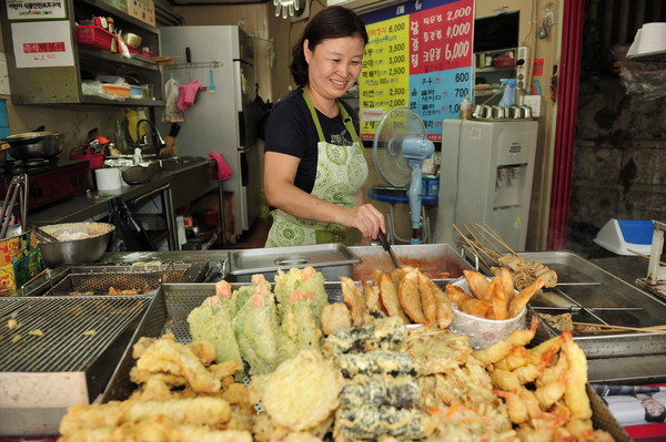 “떡볶이로 이름을 걸었지만 저희는 수제튀김전문점이기도해요. 튀김 하나는 자신 있어요. 보통 180도의 온도로 튀기지만 저희는 200~210도의 온도로 가마솥에다 튀기거든요. 바삭한 맛이 오래간답니다.