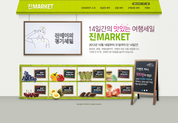 장터 형식 ‘진마켓’ 오픈… 봄·가을 2회 정기세일 진행31일까지 14일간… 항공권·여행 상품 최대 61% 할인오픈기념 ‘국제선’ 항공권 ‘100원’ 역경매 이벤트 개최