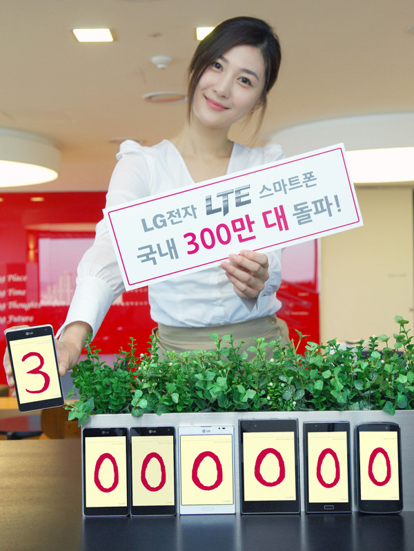 LG전자는 22일 LTE 스마트폰 국내 판매량이 300만대를 돌파했다고 밝혔다.