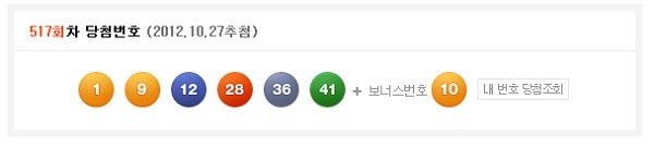 517호 로또의 1등 행운은 5명에게 돌아갔으며 각각 26억원을 받게된다.27일 나눔로또 517회 추첨 결과 로또 1등 당첨번호는 '1, 9, 12, 28, 36, 41'이며 보너스 번호는 '10'으로 발표됐다.6개 번호를 맞춘 로또 1등 당첨자는 5명으로, 1인당 26억5905만7725원을 받는다. 1등번호 5개와 보너스 번호를 맞춘 2등 당첨자는 40명으로, 당첨금은 각 5539만7036원이다.5개 번호를 맞힌 3등은 1493명으로 각 148만4181원, 4개 번호를 맞힌 4등은 7만854명으로 각 5만원, 3개 숫자를 맞춘 5등은 119만2872명으로 고정당첨금 5000원씩 받는다.