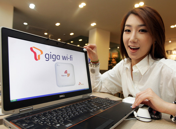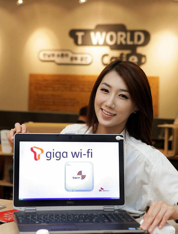 SK텔레콤이 독자 개발한 기가 와이파이 기술은 국제전기전자공학회(IEEE)에서 정한 무선랜 표준인 802.11ac 기술을 활용해 최대 1.3Gbps 속도를 제공한다.