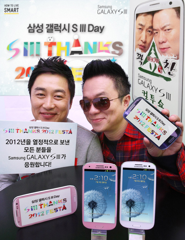 삼성전자는 12일 오는 16일부터 12월 9일까지 ‘갤럭시S3’ 구매 고객을 대상으로 ‘대입전략 강연’, ‘아이유 팬 미팅’, ‘컬투쇼’에 초대하는 '갤럭시S3 2012 페스타'를 개최한다고 밝혔다.