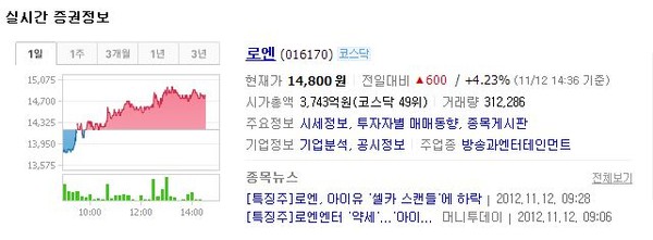 하지만 이날 로엔의 주가는 의미하는 바가 적지 않다.