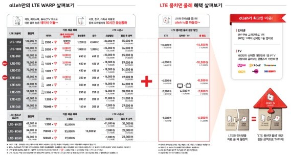 올레인터넷 고객이 LTE WARP에 가입하면서 올레TV를 함께 이용할 경우 인터넷 요금에서 매월 2,500원씩, 올레TV에서 매월 2,000원씩 할인된다.