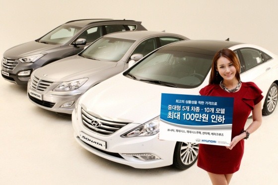 인하 대상은 쏘나타와 제네시스, 제네시스 쿠페, 싼타페, 베라크루즈 등 5종 10개 모델이다.