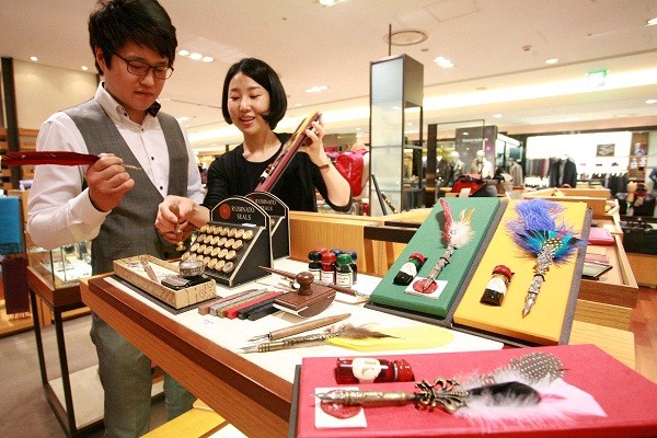 수탉의 깃털을 최고로 치지만 거위털이 대개 많이 사용되며 독수리, 부엉이, 매, 칠면조 등의 깃털도 사용된다.또 손편지에 나만의 사인이나 심볼을 넣을 수 있는 인장도 판매한다.
