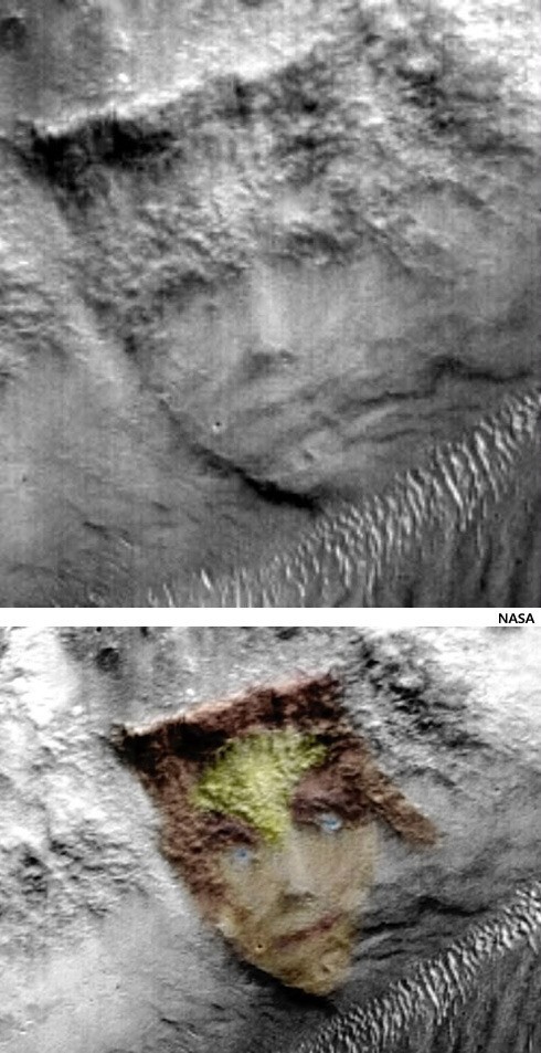 이 사진은 2000년 리비아 몬테스에서 촬영된 것으로 화성 표면에 소녀 얼굴이 보인다. 화성 겉면에 채색을 입힐 경우 소녀 얼굴이 더 뚜렷이 드러나 이 때문에 ‘화성 공주’라고 부르기도 한다. 채색을 하면 미모가 상당하다는 평이다.