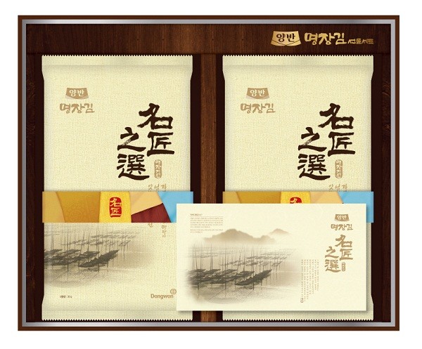 수작업으로 제작된 고급 케이스에 고급스런 느낌의 보자기로 한 번 더 포장했다.“‘양반 명장지선’은 동원의 원초 명장이 엄선한 최고 품질의 김만을 담았기 때문에 귀한 분에게 드리는 품격 있는 선물로 좋다”- 동원F&B 안영후 식품BU장