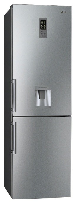 LG 냉장고는 위쪽에 냉장실을 아래쪽에는 냉동실을 배치한 제품이며 냉장고와 정수기를 결합해 차가운 물을 바로 마실 수 있도록 했다.