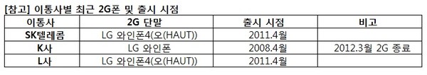 법인고객을 제외한 2G 개인 가입자 중 50대 이상의 비중이 61%이며 40대 이상도 82%에 달한다.2G ‘와이즈2’는 사진만 보고 간편히 지인에게 통화하거나 문자를 보낼 수 있는 ‘핫키’기능, FM라디오와 DMB, T맵, T맵 골프 등이 탑재됐다.
