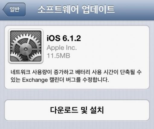한편, 애플은 지난주 초 아이폰4S에서 iOS 6.1 업그레이드시 발생하는 3G 통신망 오류를 수정한 iOS 6.1.1 버전을 내놓은 바 있다.