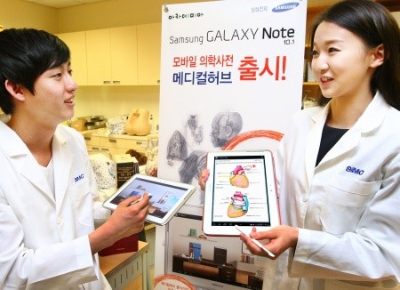 삼성전자는 13일 의학사전 전문출판사인 아카데미아와 협력해 ‘갤럭시노트10.1’에 ‘의학사전’을 탑재한 ‘갤럭시노트10.1 메디컬허브 에디션’을 판매한다고 밝혔다.