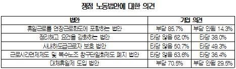 [휴일근로를 연장근로시간 한도에 포함하는 근로시간 단축 법안(52.3%)]을 첫 손에 꼽았다.이어,