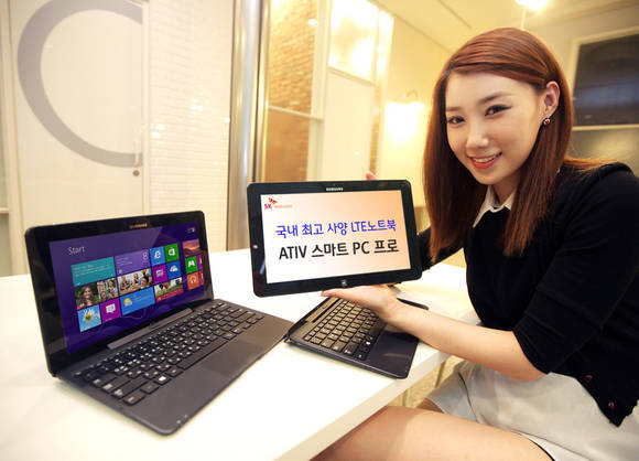 <SK텔레콤>이 [LTE데이터 함께쓰기]로,저렴하게 무선 데이터를 이용할 수 있는 LTE노트북,삼성전자 [아티브 스마트 PC프로]를,24일 출시한다고 밝혔다.<SK텔레콤>, <삼성전자>, <인텔>, <마이크로소프트>,4개 사의 합작품인 [아티브 프로]는,울트라북에 장착되는,고성능 인텔 i5 프로세서(1.8GHz)를 비롯,128GB SDD, 4GB RAM,11.6인치 Full-HD(1920x1080),디스플레이, 윈도8 등을 탑재한,국내 최고 사양의 LTE 노트북이다.태블릿PC보다 사양이 뛰어나며PC용 소프트웨어를 원활히 구동할 수 있어,오피스 및 전문작업,PC 게임 환경에서도 유용하다고 SK텔레콤은 설명했다.또 최대 [75Mbps]의 LTE를 지원하며,LTE노트북 최초로 [멀티캐리어]를 지원해,850MHz와 1.8GHz 중 쾌적한 LTE주파수를,자동으로 선택할 수 있다.터치 스크린이 장착된,본체와 키보드를 분리할 수 있어,휴대성이 편리한 것도 특징이다.아티브 프로는,LTE 데이터 전용 [35/49 요금제]에 가입해 사용할 수 있으며,LTE 스마트폰 요금제를 쓰는 고객이라면,[LTE데이터 함께쓰기]를 통해,스마트폰 기본 데이터를 공유할 수 있다.