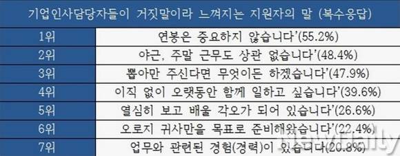 라는 질문에 기업 인사담당자들의 85.8%가 [있다]라고 답했다.거짓말이라고 판단한, 지원자의 말 1위는 [연봉은 중요하지 않습니다(55.2%)]가 차지했다.