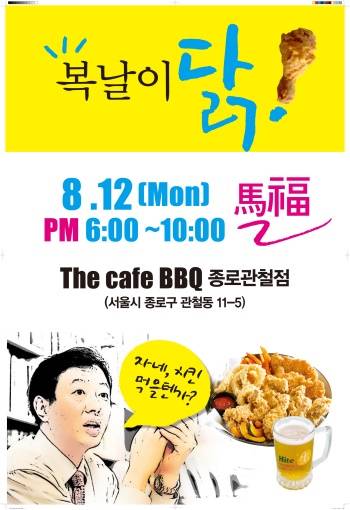 오는 12일 말복을 맞아국내 인기 출판사 문학동네와 국내 1위 치킨프랜차이즈 BBQ가 손을 잡고[청춘멘토] 김난도 작가의 특별 팬미팅을 진행한다.이번 팬미팅은[청춘과 함께 하는 치맥파티] 라는 주제로bbq 프리미엄카페 종로 관철점(서울시 종로구 관철동 11-5)에서 진행된다.참가 희망자는김난도 작가의 도서(천 번을 흔들려야 어른이 된다, 내일)를 소지하고당일 bbq 프리미엄카페 종로관철점에 방문하면 된다.팬미팅은최대 500명이 참여 가능하며,인원이 몰릴 것을 대비해 당일총 세 번(6시~7시, 7시30분~8시30분, 9시~10시)에 걸쳐 진행한다.참가 희망자가 500명이 넘을 경우선착순 안에 들지 못한 인원에게는테이크아웃 메뉴인 꼬꼬맥(치킨+맥주) 또는 꼬꼬콜(치킨+콜라)을무료로 증정한다.