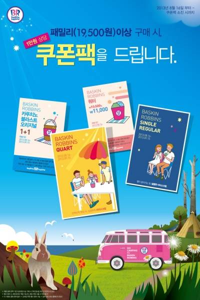 배스킨라빈스는오는 16일부터 패밀리 사이즈(1만9500원) 이상 구매 시1만원 상당의 쿠폰팩을 증정하는 행사를 실시한다고 14일 발혔다.이번 쿠폰팩은싱글 레귤러 1+1 쿠폰, 파인트 할인 쿠폰(1200원 할인),쿼터 할인 쿠폰(2500원 할인), 카푸치노 블라스트 오리지널 1+1 쿠폰 등4종류의 쿠폰으로 구성돼 있다. 행사 기간은 쿠폰팩 소진 시까지이며쿠폰 사용 가능기간은 이달 16일부터 다음달 15일까지다."계속되는 열대야에 지친 고객들을 위해여름 더위를 식힐 수 있도록이번 쿠폰팩 프로모션을 준비했다."- 배스킨라빈스 관계자