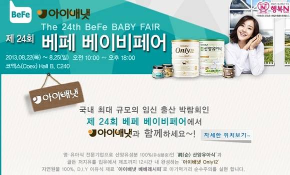 산양분유 등 영·유아식 전문회사 <아이배냇>이오는 22일부터 4일간 코엑스에서 개최되는<제24회 서울국제 임신출산 육아용품 전시회(이하 베이비페어)>에참가한다.<베이비페어>는