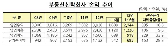 [2013년 상반기 부동산신탁회사 영업실적 분석]에 따르면