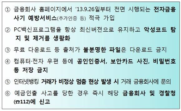 인터넷뱅킹 이용 시 유의 사항을 전했다. -