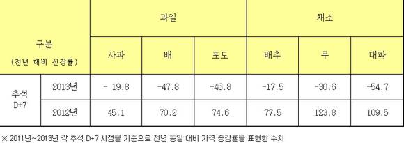 낙과 피해가 적어 사과, 배 등의 출하량이 크게 늘었기 때문이다.