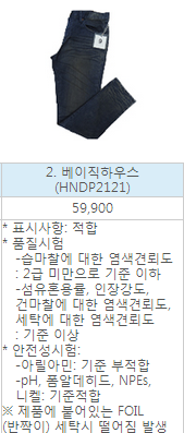 기술표준원 고시 기준치(30mg/㎏ 이하)는 물론KATRI 테스트의 검출 한계치인 5mg/kg 기준을 통과했다는 의미다.앞서 이날 <한국소비자연맹>은남성용 청바지 15종을 대상으로 한 품질과 안정성 조사결과,<베이직하우스> 제품(HNDP2121)에서발암물질인 [아릴아민]이 1㎏당 88.8㎎ 검출됐다고 발표했다.다만, 베이직하우스는"테스트 결과가 나올때까지