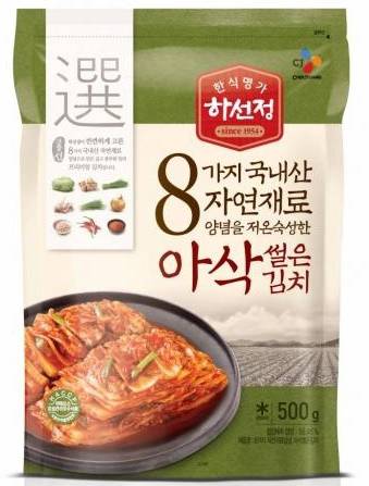 [CJ제일제당]의 김치브랜드 하선정이 집김치의 맛을 살린[8가지 자연재료양념 아삭썰은김치]를 출시했다.집에서 담근 김치 맛을 구현하기 위해[CJ아삭공법]과[가정식 저온 숙성 양념]을 도입했다.CJ아삭공법이란통배추를 통째로 잘라줄기부터 입까지고루 절이는 절임 기법을 말한다.기존 포기째 절이는 방식에 비해갓 담근듯한 아삭한 식감을 높여주는 동시에3.5%가량 낮은 염도의 소금물에서 절임이 가능하다.가격은 대형마트 기준 5,900원(500g)이다.