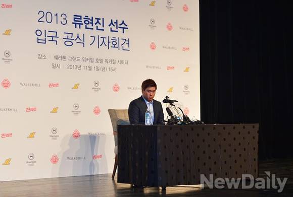 메이저리거 류현진이 입국 후 첫 공식 기자회견을 가졌다.