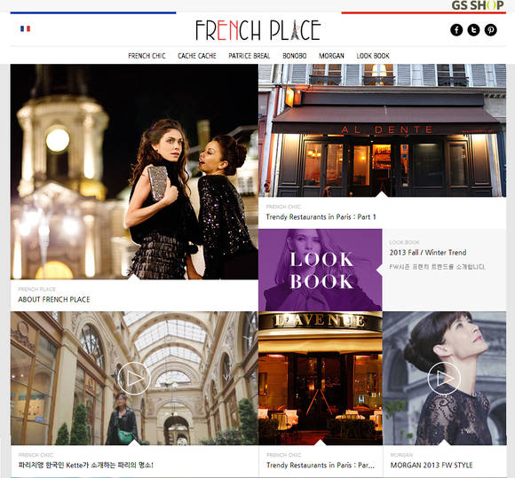 [GS샵]의 인터넷쇼핑몰(www.gsshop.com)이업계 최초로 프랑스 유명 패션 브랜드 상품을 한 자리에 모아 선보이는프랑스 패션&라이프 스타일 전문몰[프렌치 플레이스(French Place)]를 오픈 했다고 4일 밝혔다.이를 통해프랑스의 감성을 그대로 느낄 수 있는 트렌디한 상품을한자리에서 볼 수 있게 됐으며국내에서 쉽게 찾을 수 없는프랑스 직수입 상품들도합리적인 가격에 구입할 수 있다고회사 측은 전했다.[프렌치 플레이스]에는독특하면서도 트렌디한 디자인으로 유명한[까쉐까쉐(cache cache)],젊은 감각의 데님 전문 브랜드 [보노보(BONOBO)],국내에서도 인기몰이 중인 [모르간(Morgan)],고급스럽고 우아한 디자인이 특징인 [빠뜨리스 브리엘(PATRICE BREAL)] 등프랑스에서 꾸준히 사랑 받고 있는 4개 브랜드가 입점 돼 있다.특히현지 인기상품을 국내에서 쉽고 빠르게 만나 볼 수 있도록[까쉐까쉐]와 [보노보] 등의 상품은프랑스에서 직수입해 선보인다.상품 판매 페이지 외에도프랑스의 핫 플레이스, 요리, 와인 등을 소개하거나브랜드 소개 영상, 현지 매장 투어 영상 등다양한 컨텐츠도 볼 수 있어 [프렌치 스타일]을더 가깝게 느낄 수 있게 했다.[프렌치 플레이스] 오픈은그동안 GS샵과 프랑스 패션그룹 [보마누아(Beaumanoir)]의전략적 제휴가 있었기에 가능했다."지금까지 국내 인터넷 쇼핑몰의 경우미국이나 일본의 패션을 소개하는 곳은 많았지만프랑스에서 판매하는 최신 상품을프랑스 소매가와 비슷하게 선보이는 것은 처음이다.프렌치 스타일을 제대로 느낄 수 있는 전문몰로더욱 발전시켜 나가기 위해 노력하겠다."- GS샵 플랫폼 사업팀 박형민 대리