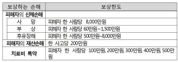 그 손해를 보상하는 보험상품이다.청소년이 다치거나 죽었을 때 피해자 한 사람당 8000만원,