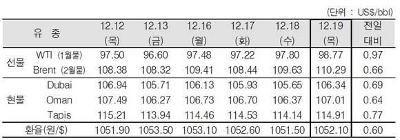 전일 대비 배럴당 0.97달러 오른 [98.77달러]를 기록했다.