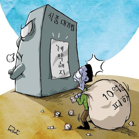 올해 대한민국을 들썩이게 만든남양유업 사태(갑질 횡포)의 상처가채 아물기도 전에이번에는대기업인 대상그룹의 아그로닉스(대표 오수환) 가[국내 농가]를 상대로 한 [갑의 횡포]로공분을 사고 있다.실제로 관련업계에 따르면 아그로닉스는우일농산영농조합법인(대표 류춘근, 이하 우일영농)과깐마늘 납품 계약을 체결하고일정 시간 뒤이를 일방적으로 파기해,이 농가에 10억원 가량의손실을 입힌 사건이도마위에 오른 것.우일영농은"대상 측이우리와의 계약을 파기한 뒤그에 대한 손해를 인정하고배상해주길 약속하고도2년이 흐른 현재까지이에 대한 책임을나몰라라 태도로 일관해최근 민사소송까지 제기했다"고26일 밝혔다.대상그룹의 아그로닉스는과일, 채소 등 농산물 도매업체로대상그룹 경영지원실장 출신인오수환씨가 대표이다.[종가집김치], [청정원(고추장)],[맛선생], [홍초], [웰라이프] 등의브랜드로 식료품을 생산하는(주)대상, 대상FNF 및기타 대상그룹 계열사로구성돼 있다.[대상그룹의 아그로닉스]는대상홀딩스 50%,임창욱 회장의 둘째 딸 임상민 씨가 27.5%,장녀 임세령씨가 12.5%,대관령원예농업협동조합이 10%의지분을 보유하고 있다.여기에[대상홀딩스]는임상민씨가 38.36%,임세령씨가 20.41%,임창욱 회장이 2.88%,임 회장의 부인인 박현주 부회장이2.87%를 보유하고 있어,사실상 아그로닉스는대상그룹의 오너 일가가보유한 회사다.대상 아그로닉스와우일영농의 악연은2010년 7월로 거슬러 올라가2011년 1월부터 피마르는다툼과 기다림이본격 시작됐다고류춘근 대표는 전했다.대상FNF 구매팀 모 부장은2010년 4월부터류 대표에게 여러차례 접근해마늘 납품의 계약 체결을끈질기게 제안했다.2010년 7월부터마늘가가 고공행진 할 것을 염두하고싼 가격에 받아가길 희망했던계산이었다.이미풀무원과 한화 등의 대기업에게깐마늘을 납품 중이던류 대표는대상과의 거래에서도별 탈이 없을 것이란 생각에흔쾌히 제안을 받아들였다.당시대상 측의 제안은류 대표가 받아들이기에큰 무리가 없었다.2010년 7월부터 12월까지치솟은 마늘가격을싯가보다 훨씬 낮은 가격으로납품 받아가는 대신,이듬해 1월부터 6월까지는가격을 다소 높게 책정해물건을 받아가겠다는약속이 전제돼 있었기 때문이다."알고보니그들의 제안은계약을 성사시키기 위한새빨간 거짓에 불과했다.실제대상 측은시중 마늘 가격이계약가격보다 높은2010년 7월부터 12월까지만계약을 준수하고,마늘가가 폭락한이듬해 1월부터 6월까지손실 부분을 배려해가격을 높게 책정해납품을 받기는 커녕,아예제품에 하자가 있다는 핑계로반품을 반복하더니,결국 일방적으로계약을 파기해 버렸기 때문이다"- 우일영농 류춘근 대표이와 관련우일영농은시장시세가 약 7500원~8000원이던7월에서 12월 중순 사이약 145~150톤의 마늘을5,000원대로 납품,kg당 2,000원 가량의 손실을 떠안으면서3억원 정도의 피해를 보게됐다.여기에이듬해 1월부터 6월까지는대상 측이6500원의 가격대로 물건을 팔아준다 했던계약을 아예 파기,남아있던 150톤의 마늘을kg당 3,000원 가량의 손실을 보며땡처리함으로써 4억 5,000만원 정도의 손해를고스란히 떠 안았다.이 밖에대상으로 납품되지 못한 마늘 및땡처리조차 하지 못한 일정 분량이9월에서 10월까지도 그대로 남아돌며썩어 버린 물량 등손해액을 합치면2억 5,000만원 가량이 넘는다.결국이들 모두를 합친 손실 총액은자그마치 10억원 가량이라는 게류 대표의 설명이다."마음 같아서는이 금액 모두를 배상 받고 싶고타임머신이 있다면그 때로 돌아가다른 업체와계약하고 싶은 마음이간절하다.당시대기업의 횡포에 이길 자신이 없어손실 총액은 고사하고7월부터 12월까지 손해본 금액만이라도보상해 달라고 애원했던 것이다.일방적으로계약을 파기했던대상 측은공정위 결과가나오기 전까지만해도[손해배상을 해주겠다]며시간을 끌더니,공정위로부터비교적 가벼운 처벌인[주의촉구] 통지서를 받은 이후엔[우리가 손실 배상을 해줄 필요가 없다]며180도 태도를 바꿔 나를 외면하기 시작했다."- 우일영농 류춘근 대표 -