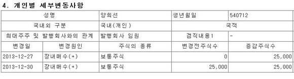 [공시]두산건설, 양희선 사장 5만주 [장내매수] 예정