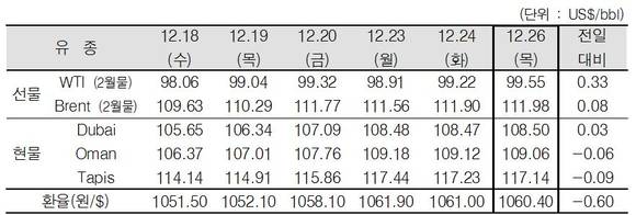 전 거래일 대비 배럴당 0.33달러 오른 [99.55달러]를 기록했다.