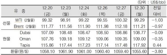 전 거래일 대비 배럴당 1.03달러 내린 [99.29달러]를 기록했다.