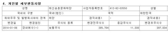[대신증권]은 6일 [대신송촌문화재단]이 장내매수로 보통주 1만1,330주를 취득했다고 공시했다.